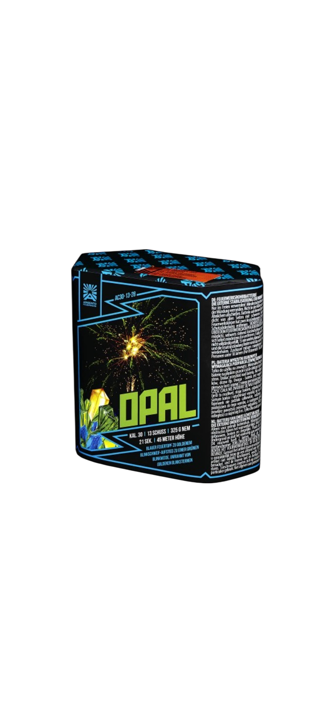 13 Schuss Batterie „Opal“, Kal. 30mm, ca. 21 Sekunden, 325g NEM, CE Kategorie F2 (2806 – F2 – 000087), ADR 1.4G