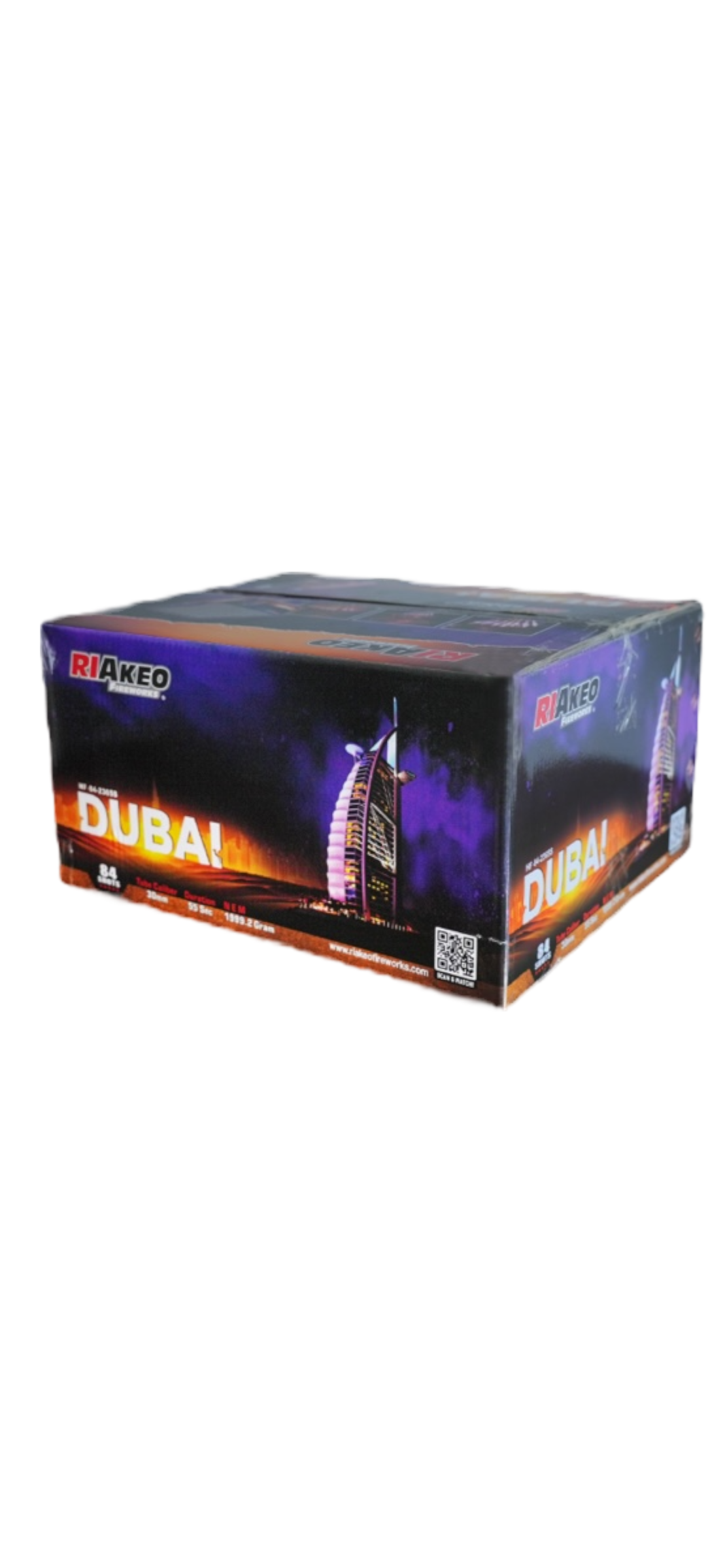 Die Dubai von Riakeo Fireworks ist ein beeindruckendes Verbundfeuerwerk, das sich durch seine opulenten Goldeffekte und eine durchdachte Choreografie auszeichnet. Mit 84 Schuss im Kaliber 30 mm und einer Nettoexplosivmasse (NEM) von 1,99 kg bietet sie eine etwa 55 Sekunden lange Show, die den Himmel in ein funkelndes Spektakel verwandelt